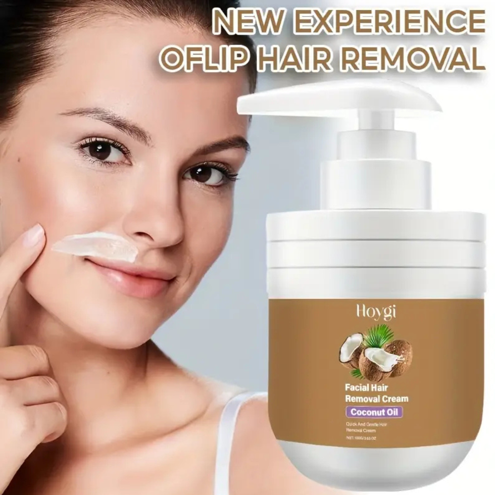 Unwanted facial hair can dull your glow and make makeup application uneven. Our Coconut Oil Facial Hair Removal Cream gently dissolves fine hair from the roots — leaving your skin smooth, hydrated, and radiant in just minutes.