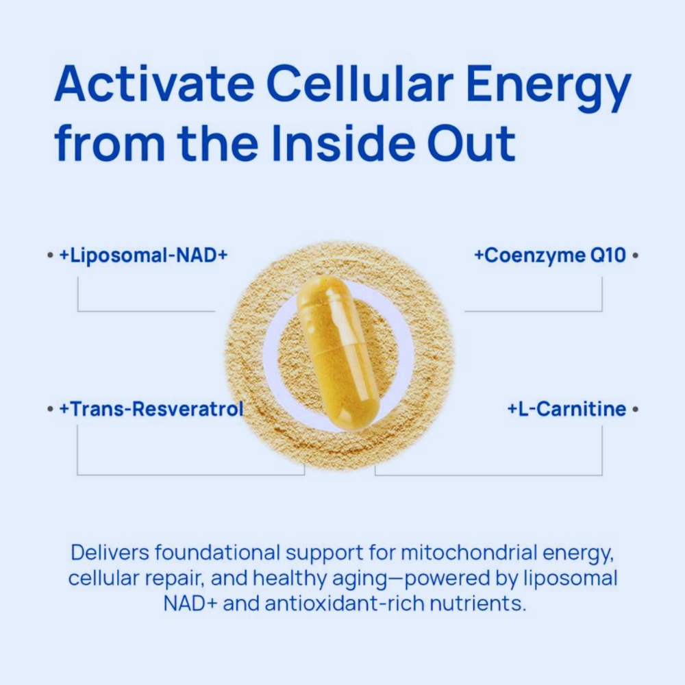 Revitalizes your cells by restoring NAD⁺ levels — helping you feel stronger, more focused, and full of energy all day.